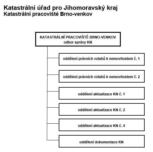 Nyní jste zde: Katastrální úřady » Jihomoravský kraj » Katastrální pracoviště Brno-venkov » O úřadu » Organizační struktura